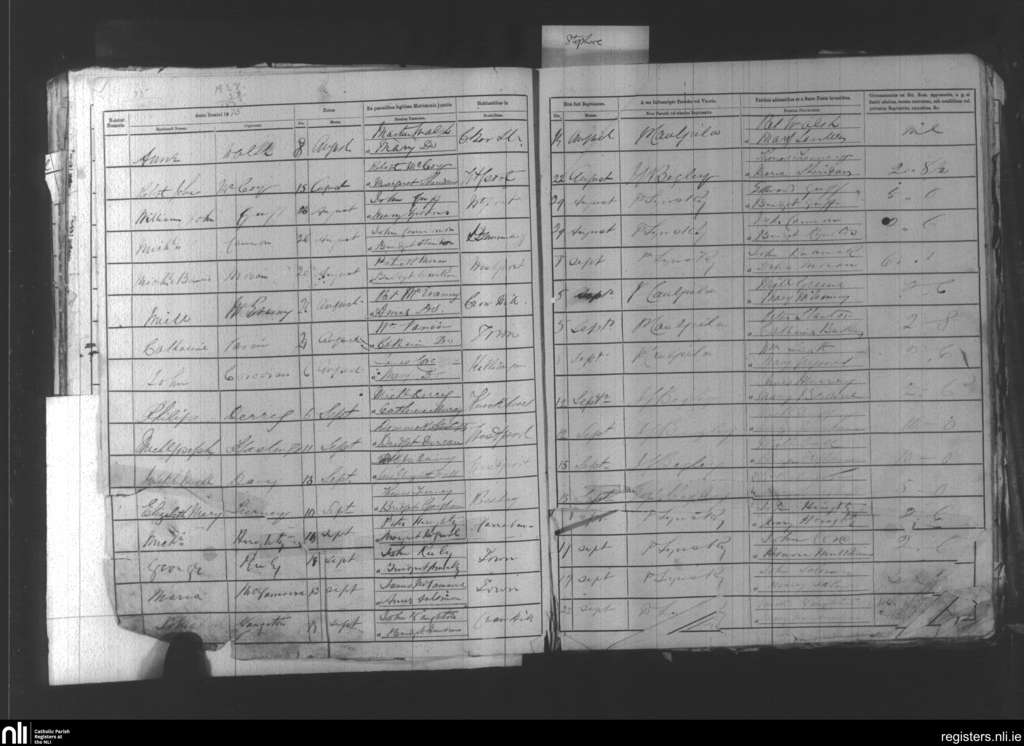 Aughaval; County of Mayo; Archdiocese of Tuam. Baptisms, Aug. 1875 to Sep. 1875