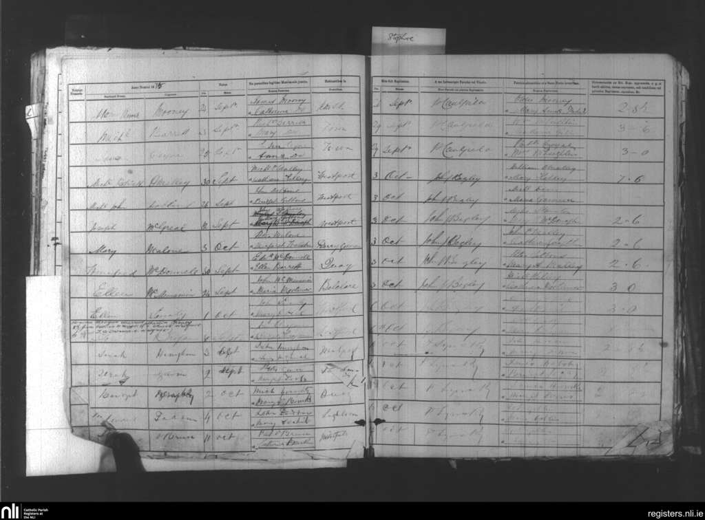 Aughaval; County of Mayo; Archdiocese of Tuam. Baptisms, Sep. 1875 to Oct. 1875