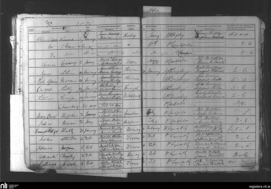 Aughaval; County of Mayo; Archdiocese of Tuam. Baptisms, Jan. 1876 to Feb. 1876