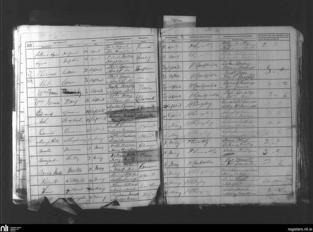 Aughaval; County of Mayo; Archdiocese of Tuam. Baptisms, Apr. 1876 to May 1876