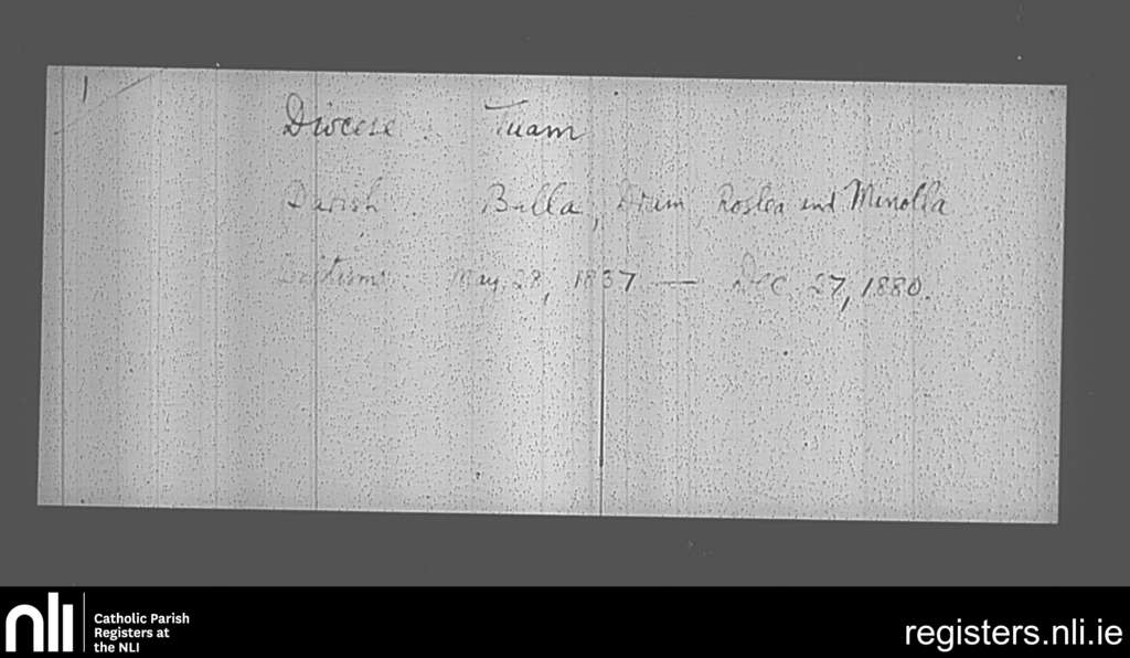Balla; County of Mayo; Archdiocese of Tuam. Baptisms