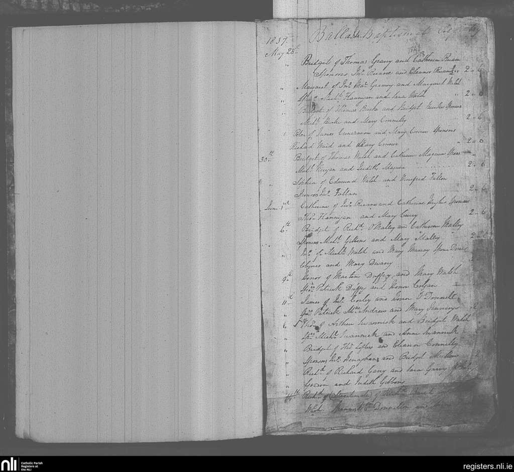 Balla; County of Mayo; Archdiocese of Tuam. Baptisms, May 1837 to June 1837