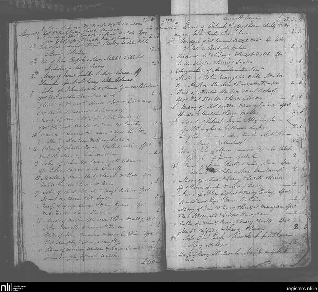 Balla; County of Mayo; Archdiocese of Tuam. Baptisms, May 1838 to June 1838