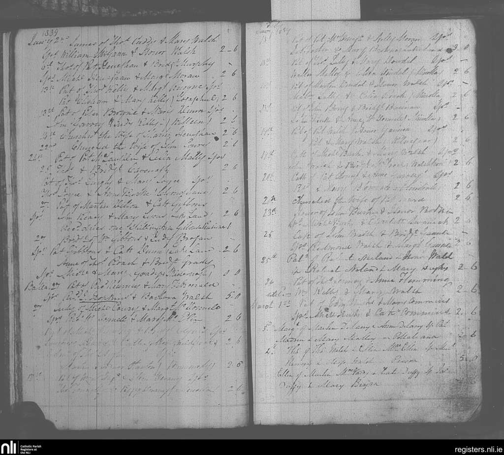 Balla; County of Mayo; Archdiocese of Tuam. Baptisms, Jan. 1839 to Mar. 1839