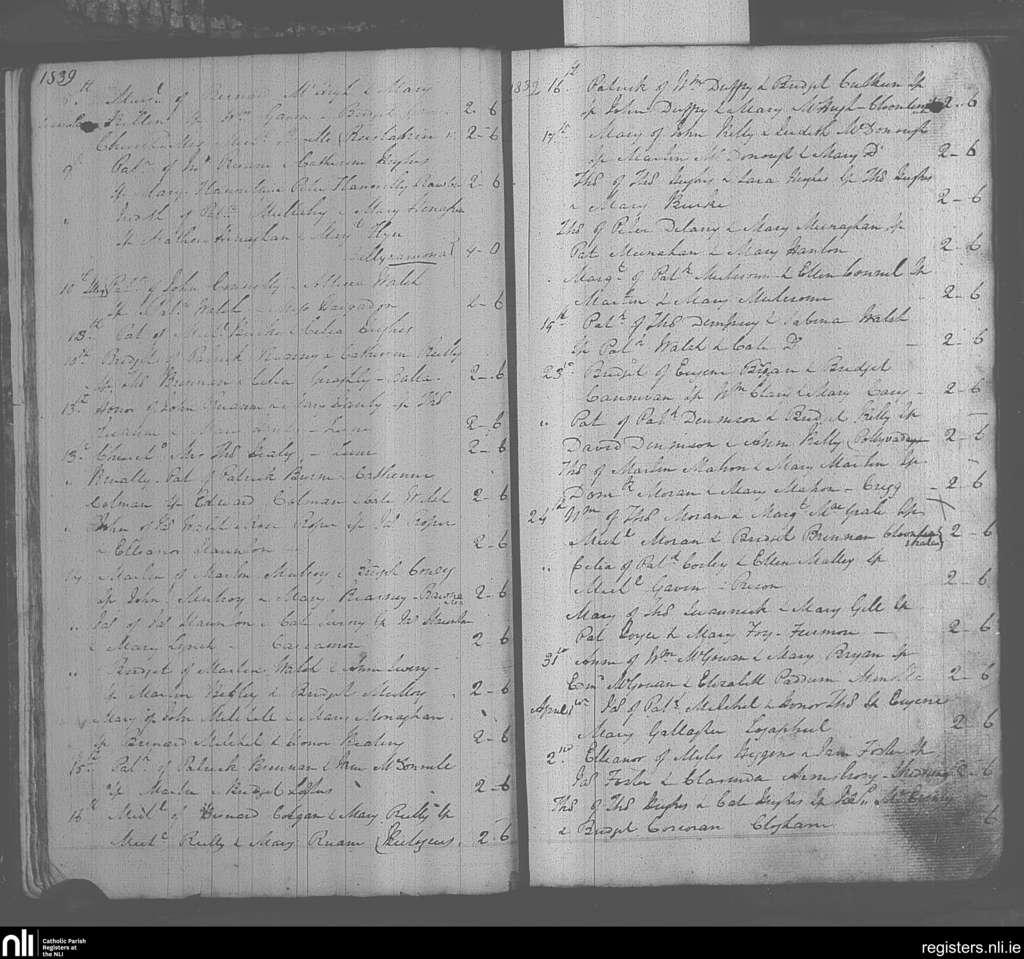 Balla; County of Mayo; Archdiocese of Tuam. Baptisms, Mar. 1839 to Apr. 1839