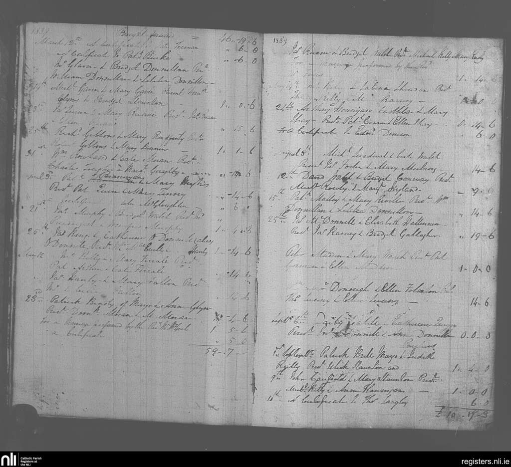 Balla; County of Mayo; Archdiocese of Tuam. Marriages, Mar. 1839 to Sep. 1839