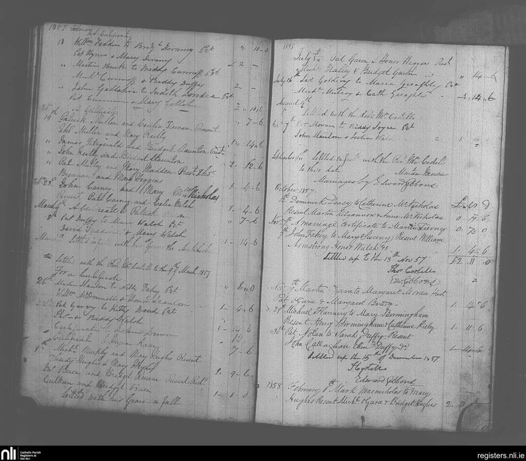 Balla; County of Mayo; Archdiocese of Tuam. Marriages, Feb. 1857 to Feb. 1858