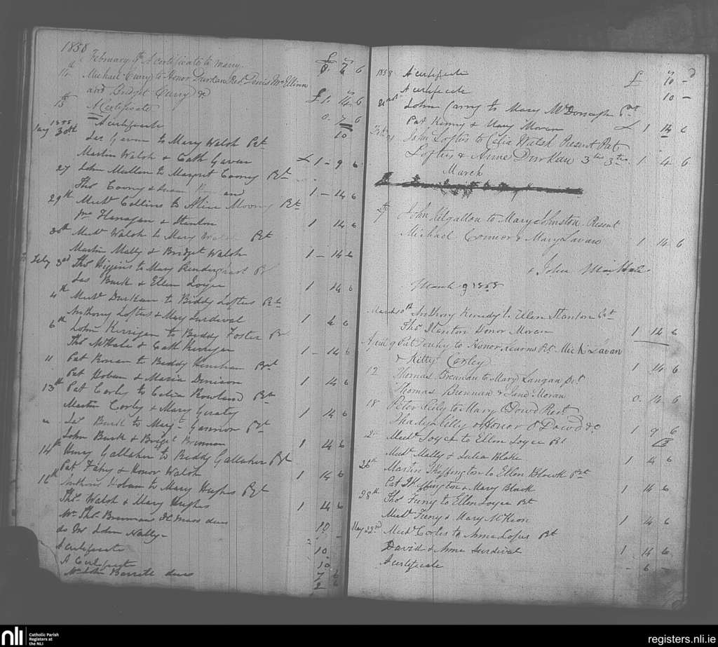 Balla; County of Mayo; Archdiocese of Tuam. Marriages, Jan. 1858 to May 1858