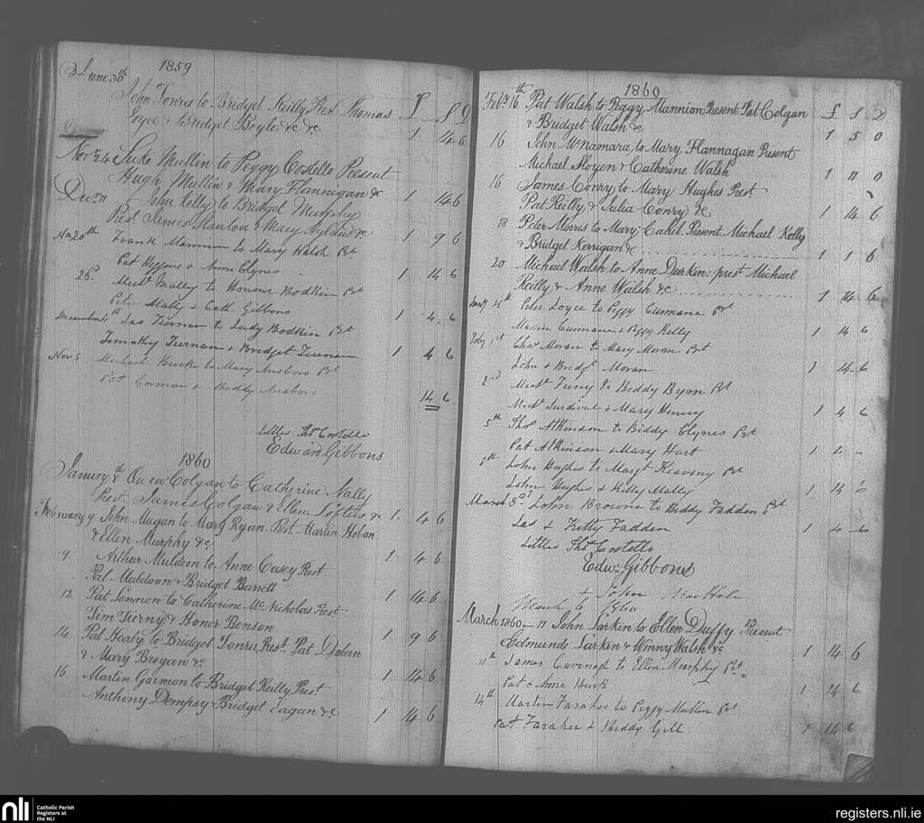 Balla; County of Mayo; Archdiocese of Tuam. Marriages, June 1859 to Mar. 1860