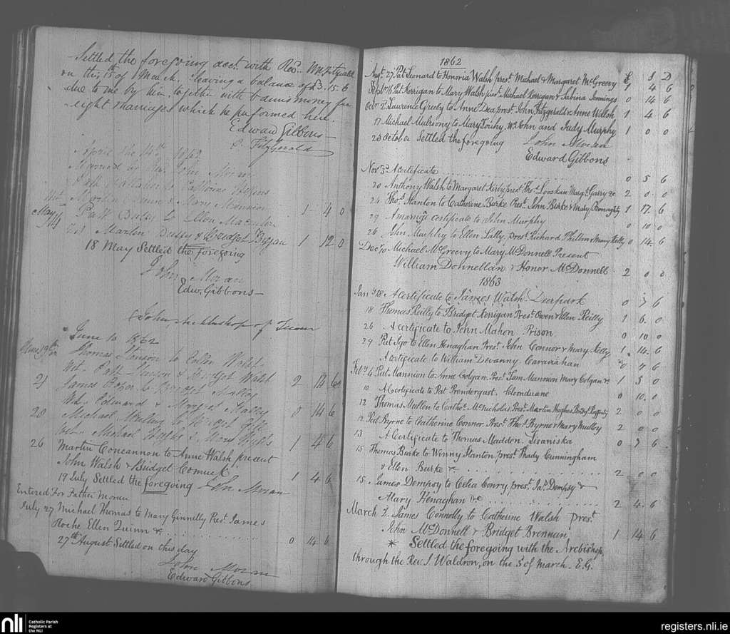 Balla; County of Mayo; Archdiocese of Tuam. Marriages, May 1862 to Mar. 1863