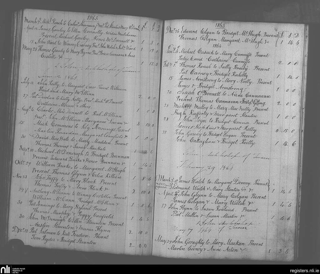 Balla; County of Mayo; Archdiocese of Tuam. Marriages, Mar. 1863 to May 1864
