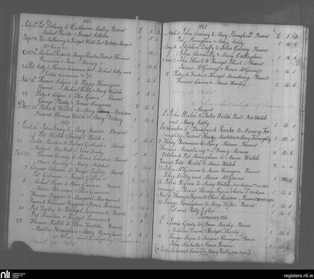 Balla; County of Mayo; Archdiocese of Tuam. Marriages, July 1864 to Jan. 1866