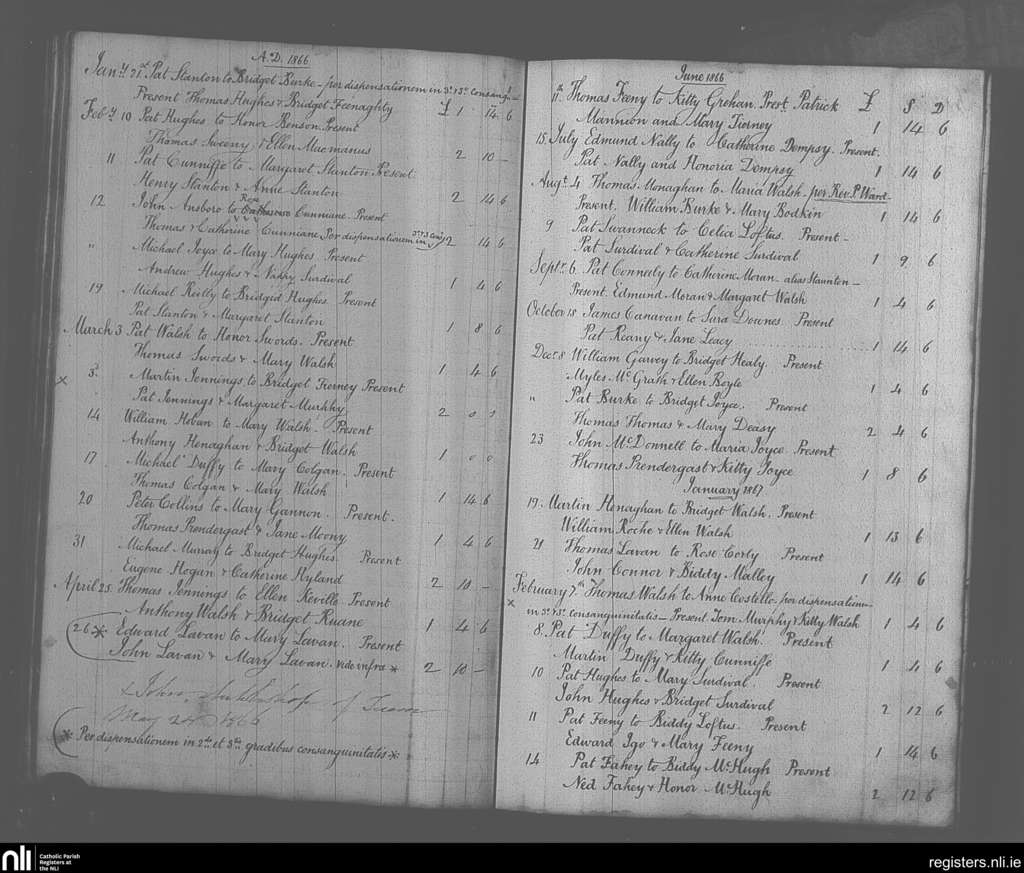 Balla; County of Mayo; Archdiocese of Tuam. Marriages, Jan. 1866 to Feb. 1867