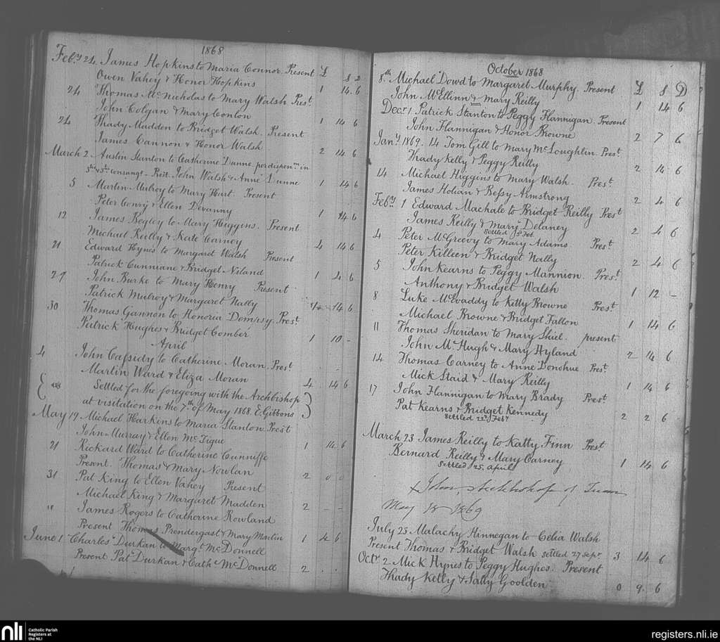 Balla; County of Mayo; Archdiocese of Tuam. Marriages, Feb. 1868 to Oct. 1869