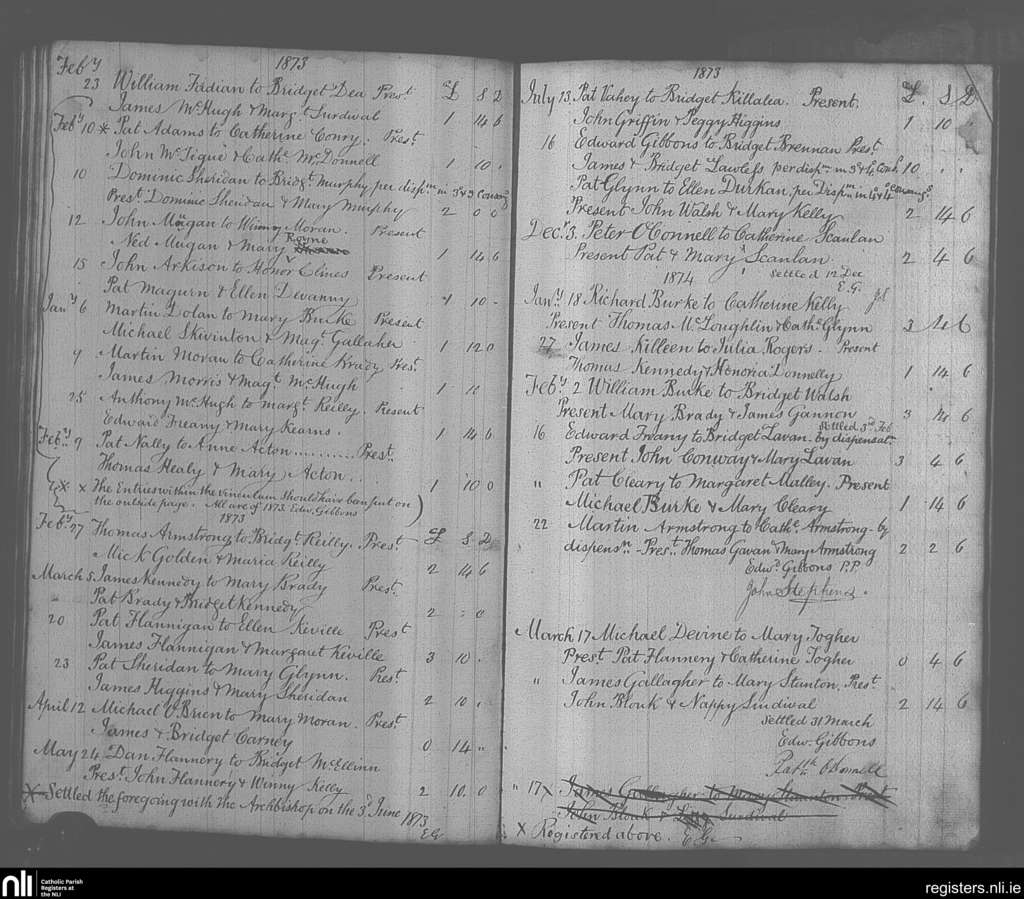 Balla; County of Mayo; Archdiocese of Tuam. Marriages, Jan. 1873 to Mar. 1874