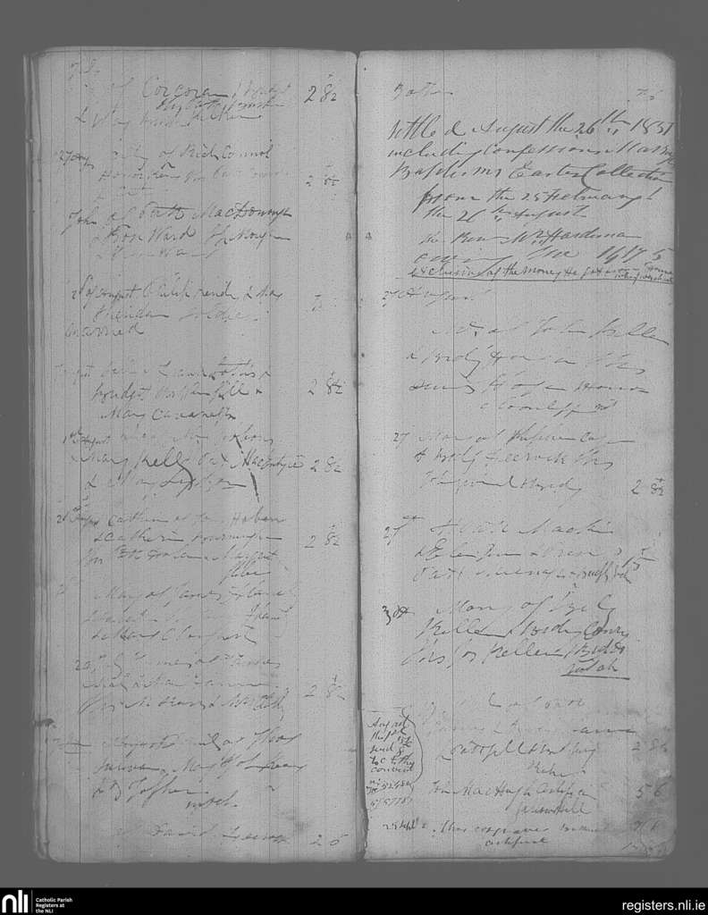 Ballinrobe; County of Mayo; Archdiocese of Tuam. Baptisms, Marriages, July 1851 to Sep. 1851