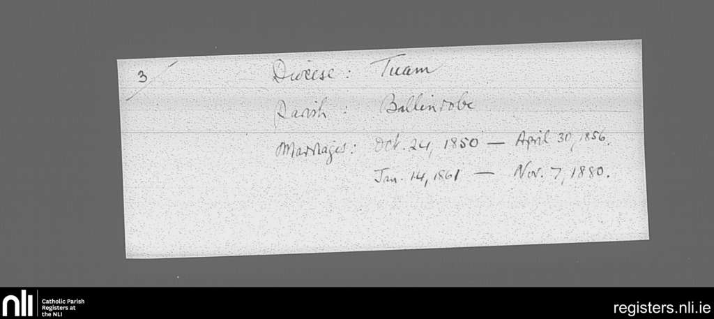 Ballinrobe; County of Mayo; Archdiocese of Tuam. Marriages