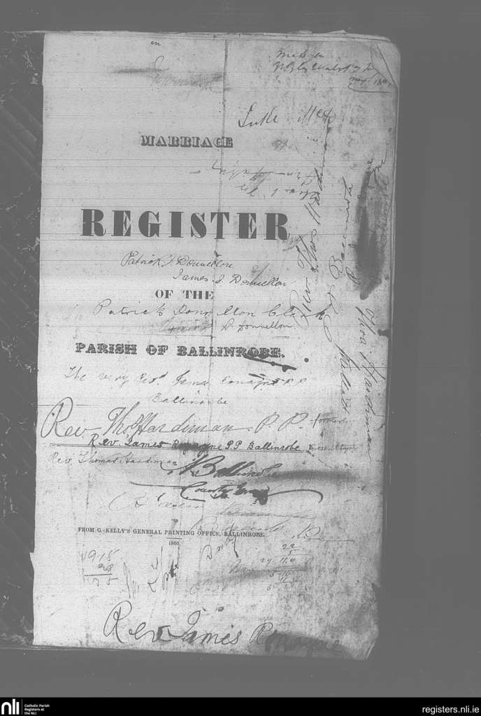 Ballinrobe; County of Mayo; Archdiocese of Tuam. Marriages
