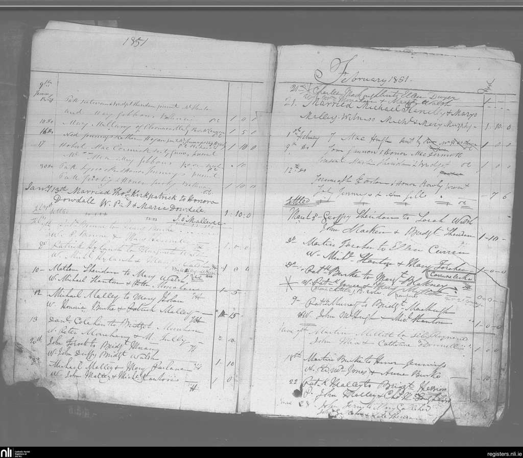 Ballinrobe; County of Mayo; Archdiocese of Tuam. Marriages, Jan. 1851 to June 1851