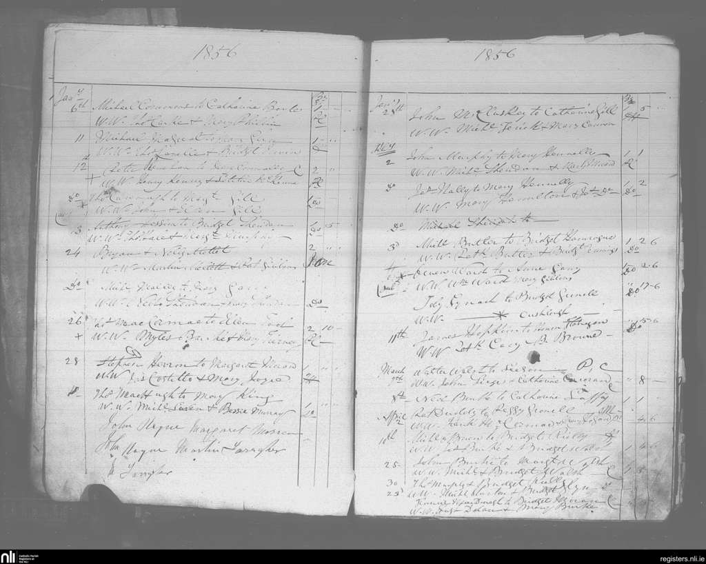 Ballinrobe; County of Mayo; Archdiocese of Tuam. Marriages, Jan. 1856 to Apr. 1856