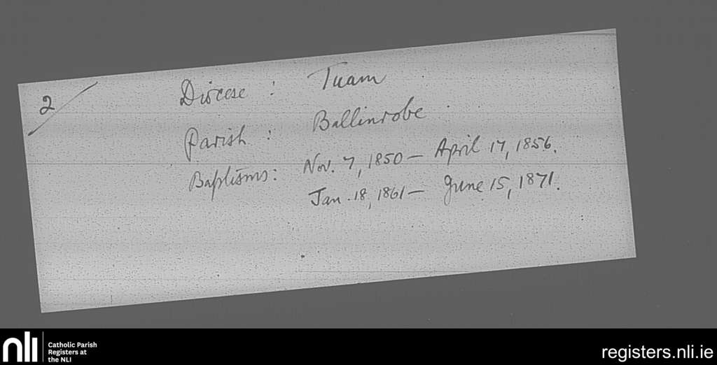 Ballinrobe; County of Mayo; Archdiocese of Tuam. Baptisms