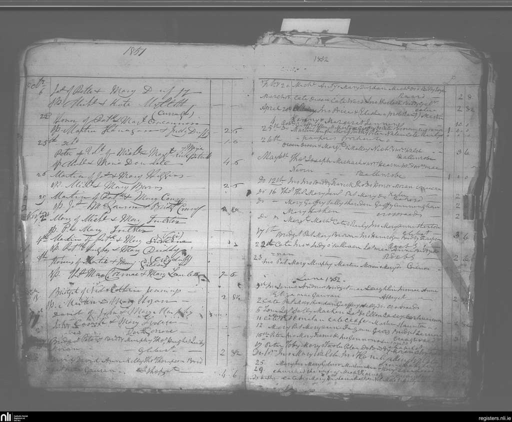 Ballinrobe; County of Mayo; Archdiocese of Tuam. Baptisms, Oct. 1851 to June 1852