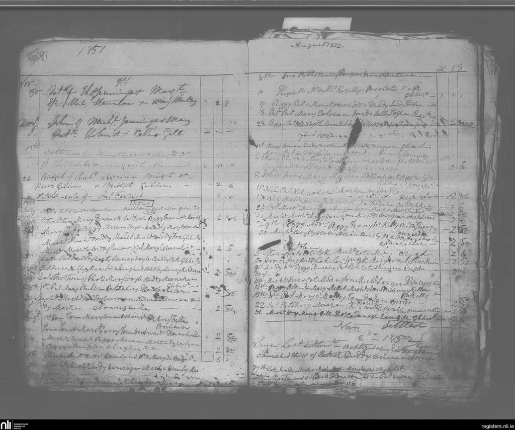 Ballinrobe; County of Mayo; Archdiocese of Tuam. Baptisms, Nov. 1851 to Nov. 1852