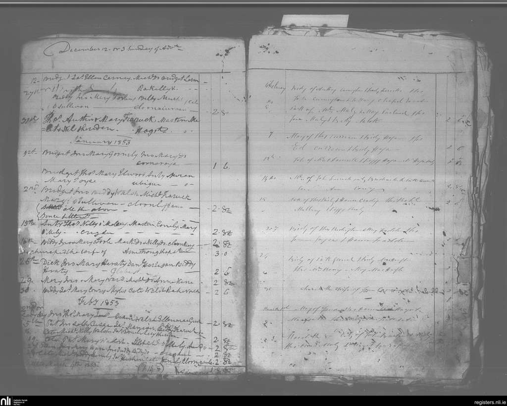 Ballinrobe; County of Mayo; Archdiocese of Tuam. Baptisms, Dec. 1852 to Mar. 1853