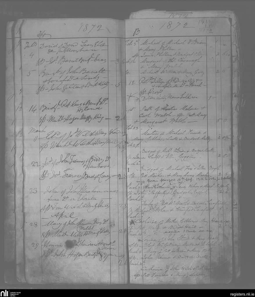 Ballinrobe; County of Mayo; Archdiocese of Tuam. Baptisms, Marriages, Feb. 1872 to Sep. 1912