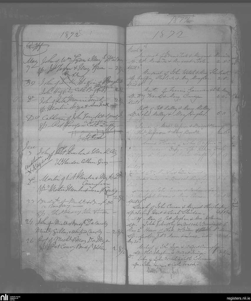 Ballinrobe; County of Mayo; Archdiocese of Tuam. Baptisms, Mar. 1872 to June 1872