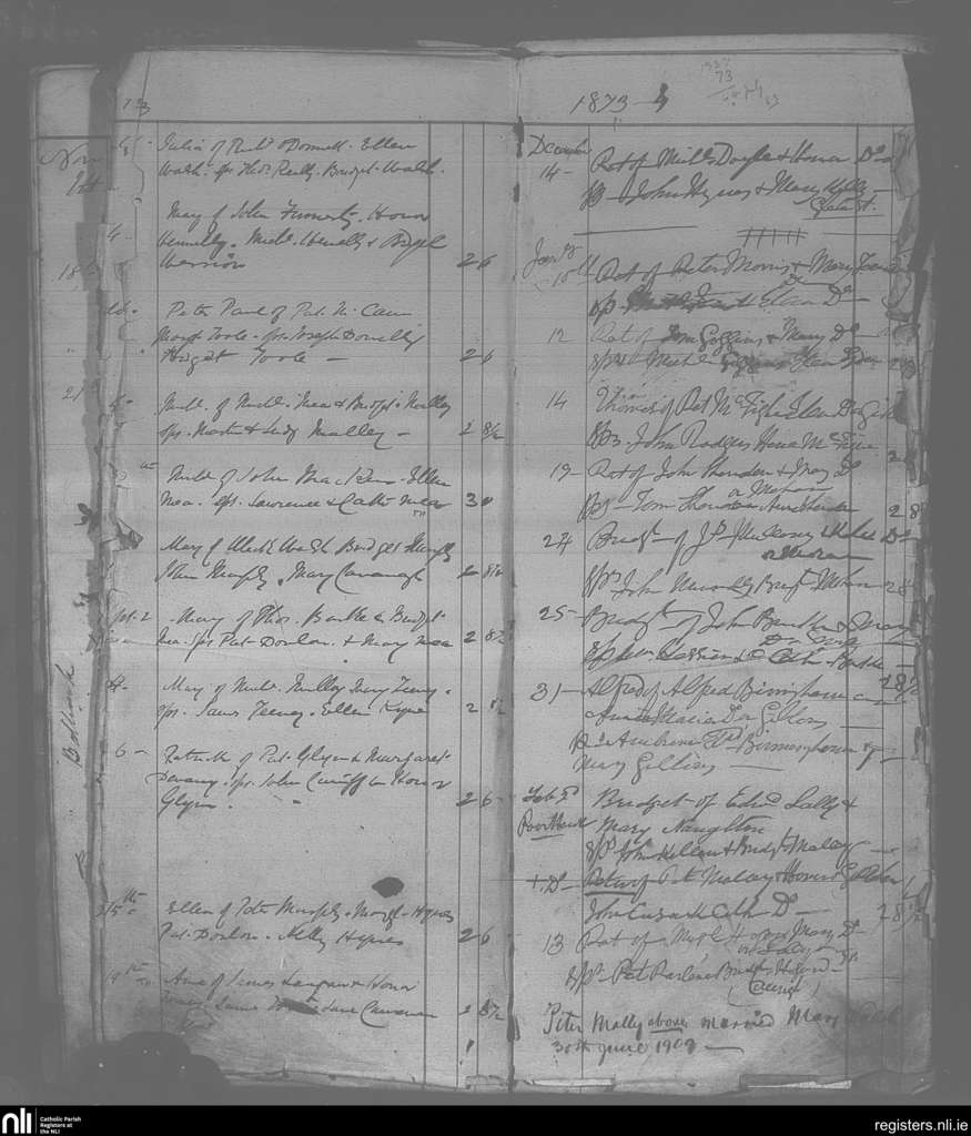 Ballinrobe; County of Mayo; Archdiocese of Tuam. Baptisms, Marriages, Sep. 1873 to June 1909