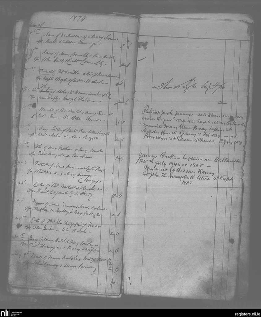 Ballinrobe; County of Mayo; Archdiocese of Tuam. Baptisms, Marriages, July 1843 to Jan. 1909