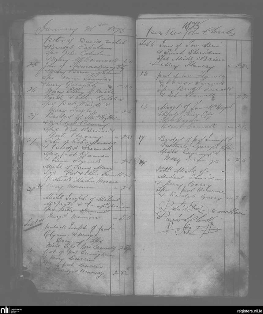 Ballinrobe; County of Mayo; Archdiocese of Tuam. Baptisms, Jan. 1875 to Feb. 1875