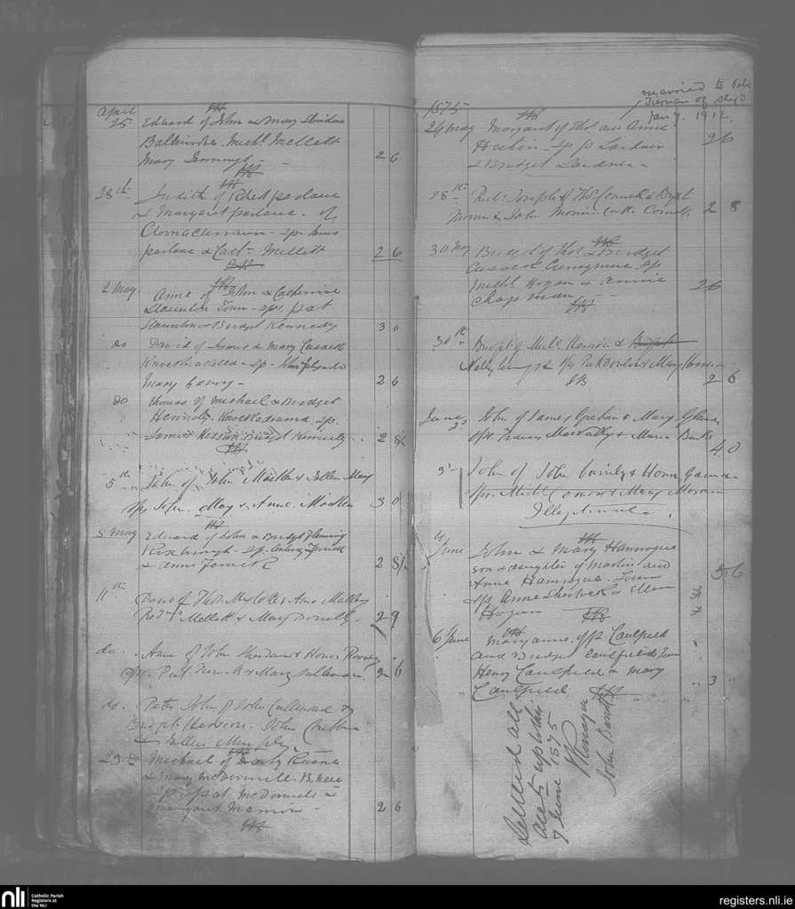 Ballinrobe; County of Mayo; Archdiocese of Tuam. Baptisms, Marriages, Apr. 1875 to Jan. 1912
