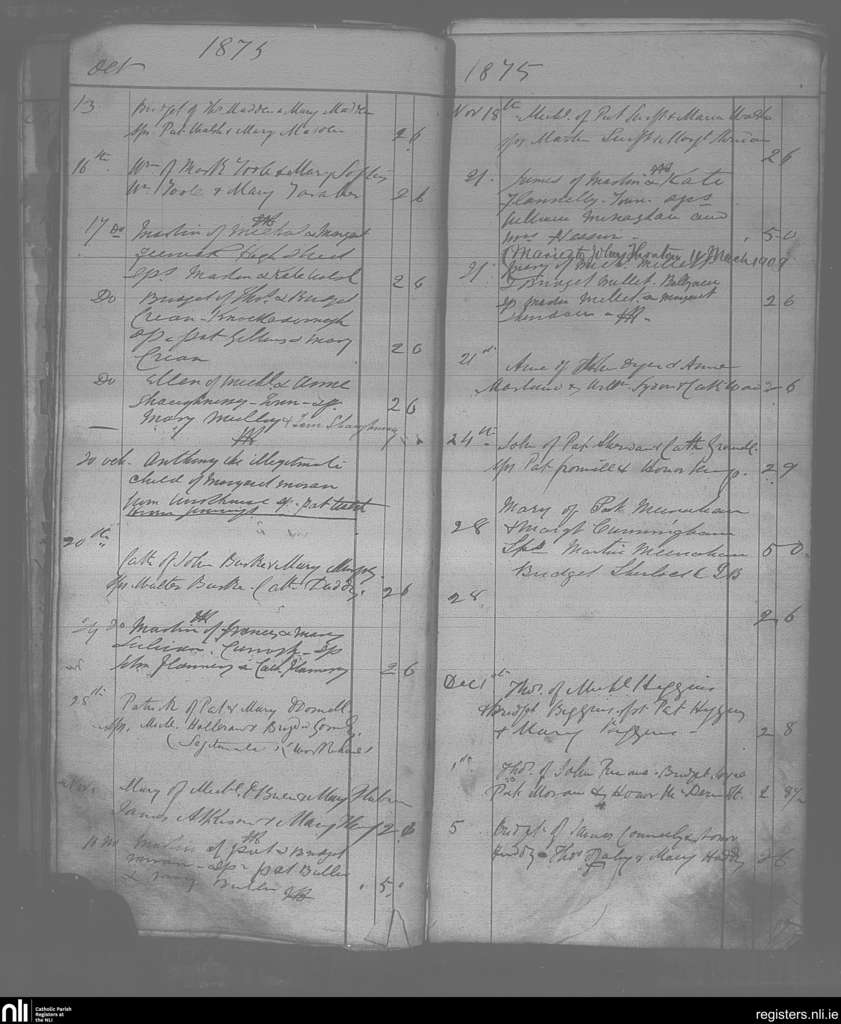 Ballinrobe; County of Mayo; Archdiocese of Tuam. Baptisms, Marriages, Oct. 1875 to Mar. 1909