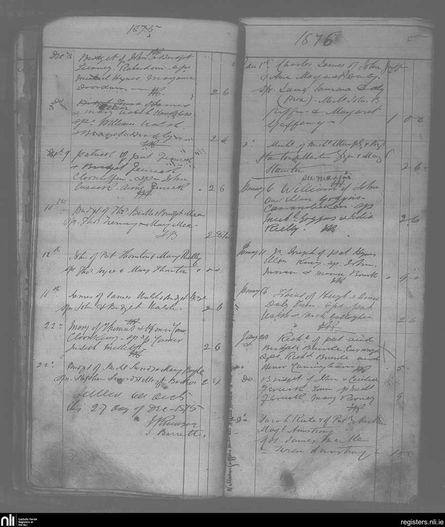 Ballinrobe; County of Mayo; Archdiocese of Tuam. Baptisms, Dec. 1875 to Jan. 1876