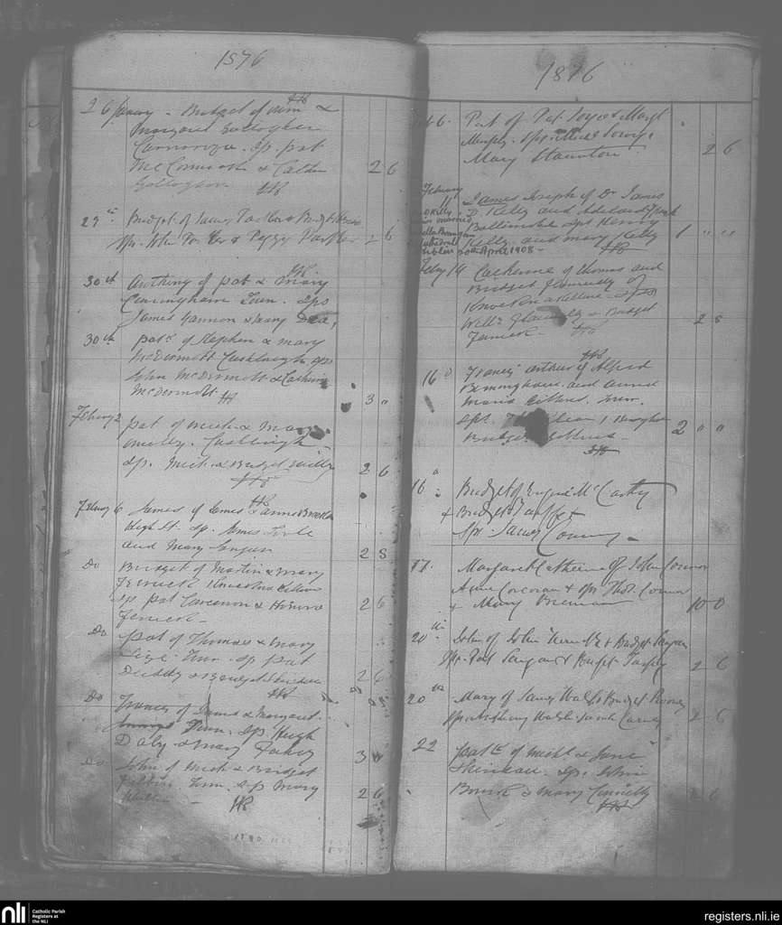 Ballinrobe; County of Mayo; Archdiocese of Tuam. Baptisms, Marriages, Jan. 1876 to Apr. 1908