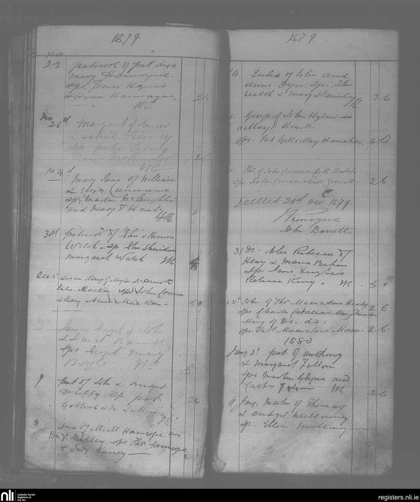 Ballinrobe; County of Mayo; Archdiocese of Tuam. Baptisms, Nov. 1879 to Jan. 1880