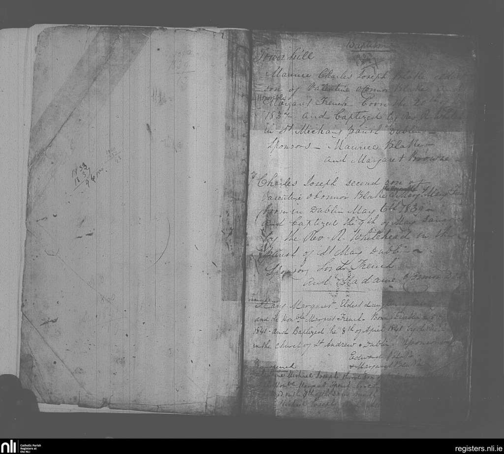 Burriscarra; County of Mayo; Archdiocese of Tuam. Baptisms, July 1837 to Apr. 1841