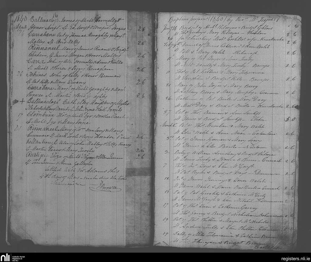 Burriscarra; County of Mayo; Archdiocese of Tuam. Baptisms, Jan. 1840 to Apr. 1840