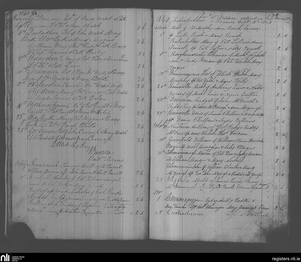 Burriscarra; County of Mayo; Archdiocese of Tuam. Baptisms, Sep. 1840 to Nov. 1840