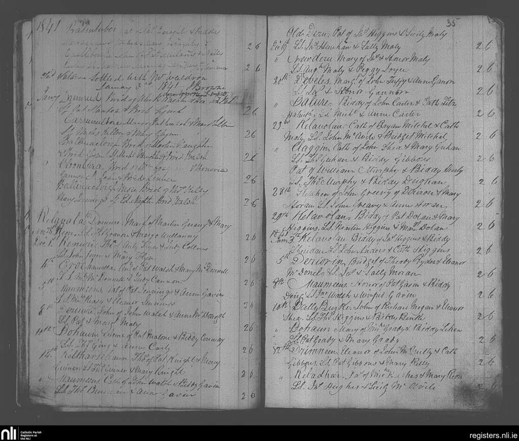 Burriscarra; County of Mayo; Archdiocese of Tuam. Baptisms, Nov. 1840 to Jan. 1841