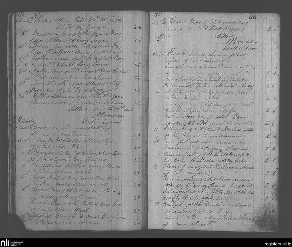 Burriscarra; County of Mayo; Archdiocese of Tuam. Baptisms, Mar. 1841 to Apr. 1841