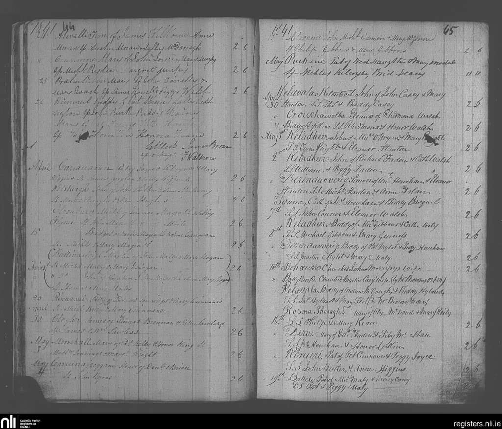 Burriscarra; County of Mayo; Archdiocese of Tuam. Baptisms, Apr. 1841 to May 1841