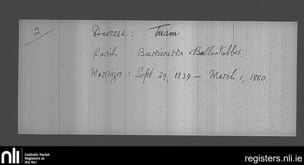 Burriscarra; County of Mayo; Archdiocese of Tuam. Marriages