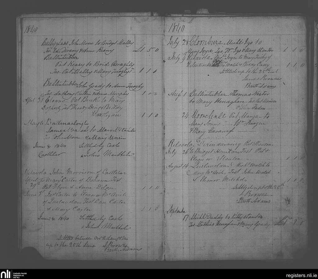 Burriscarra; County of Mayo; Archdiocese of Tuam. Marriages, Mar. 1840 to Sep. 1840