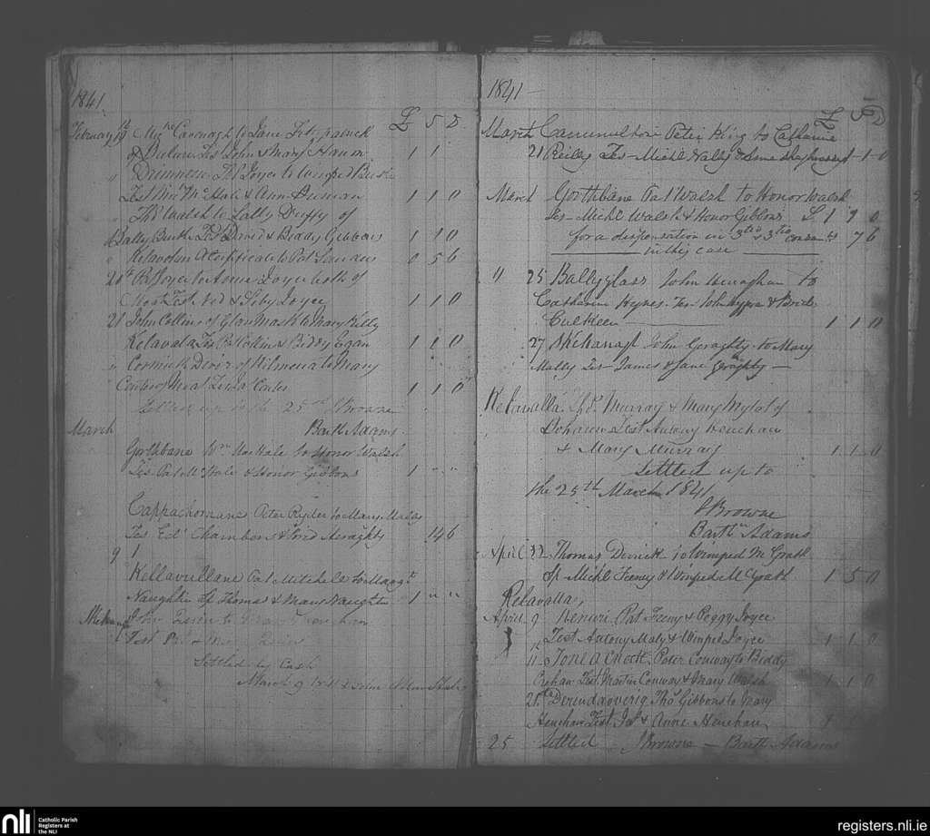 Burriscarra; County of Mayo; Archdiocese of Tuam. Marriages, Feb. 1841 to Apr. 1841