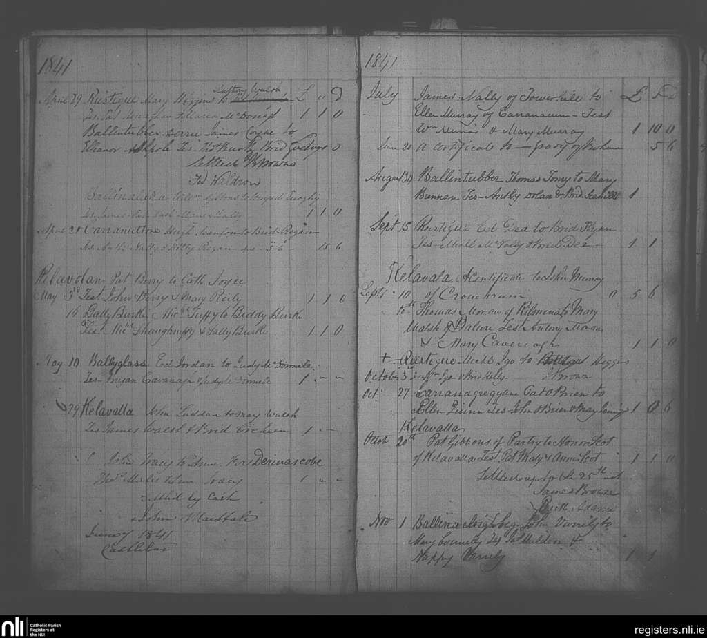Burriscarra; County of Mayo; Archdiocese of Tuam. Marriages, Apr. 1841 to Nov. 1841