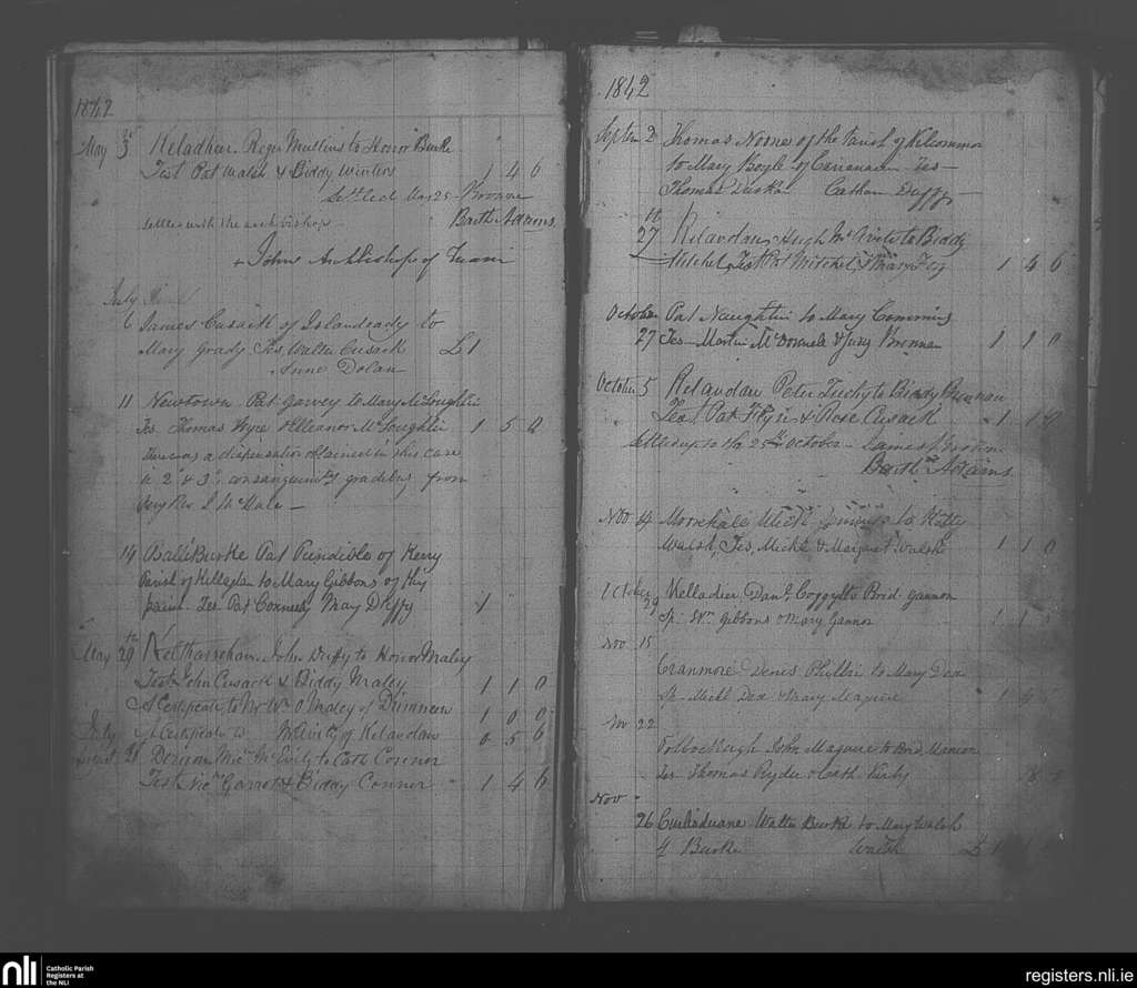 Burriscarra; County of Mayo; Archdiocese of Tuam. Marriages, May 1842 to Nov. 1842