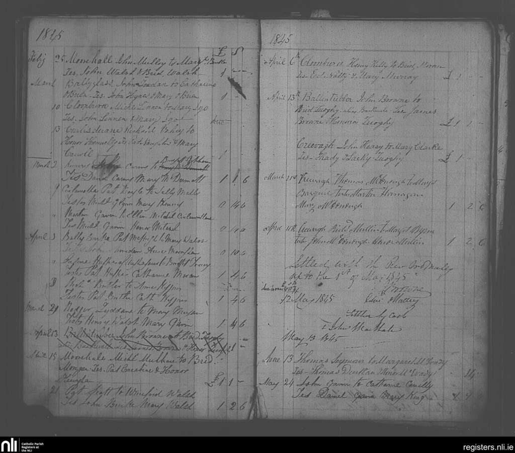 Burriscarra; County of Mayo; Archdiocese of Tuam. Marriages, Feb. 1845 to June 1845